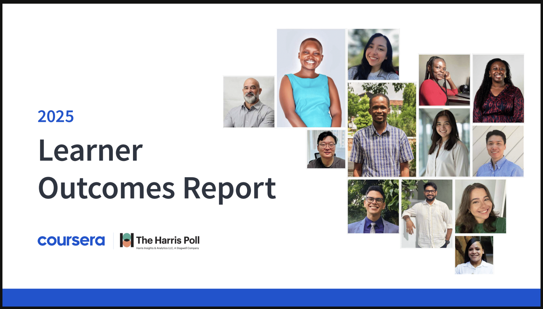 The 2025 Learner Outcomes Report features insights from over 52,000 learners across 179 countries. Created in collaboration with The Harris Poll, the report demonstrates that Coursera and its