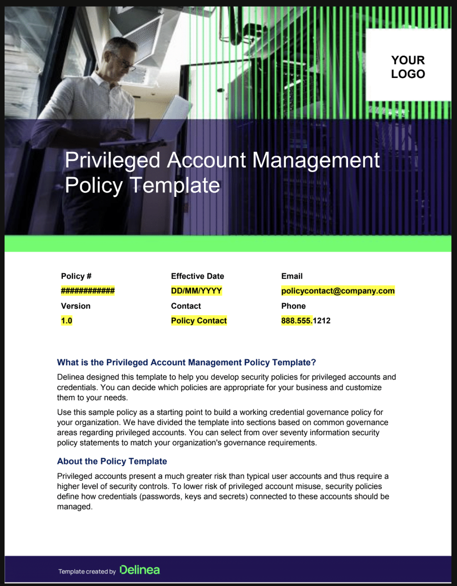 Simplify policy creation. Strengthen privileged account security. A ready-to-use policy template for faster compliance and better protection Building a Privileged Access Management (PAM) policy from the ground up